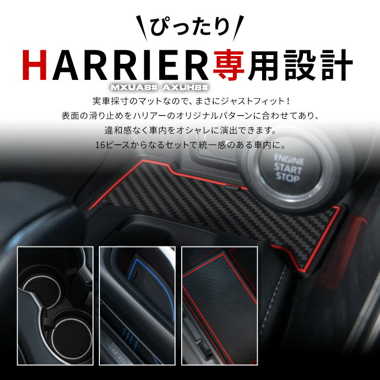 [最大P34倍] ハリアー 80系 ラバーマット 滑り止めマットつき 16P ドリンクホルダー ホワイト ブルー レッド ドアポケットマット インテリアラバーマット HARRIER 80 トヨタ