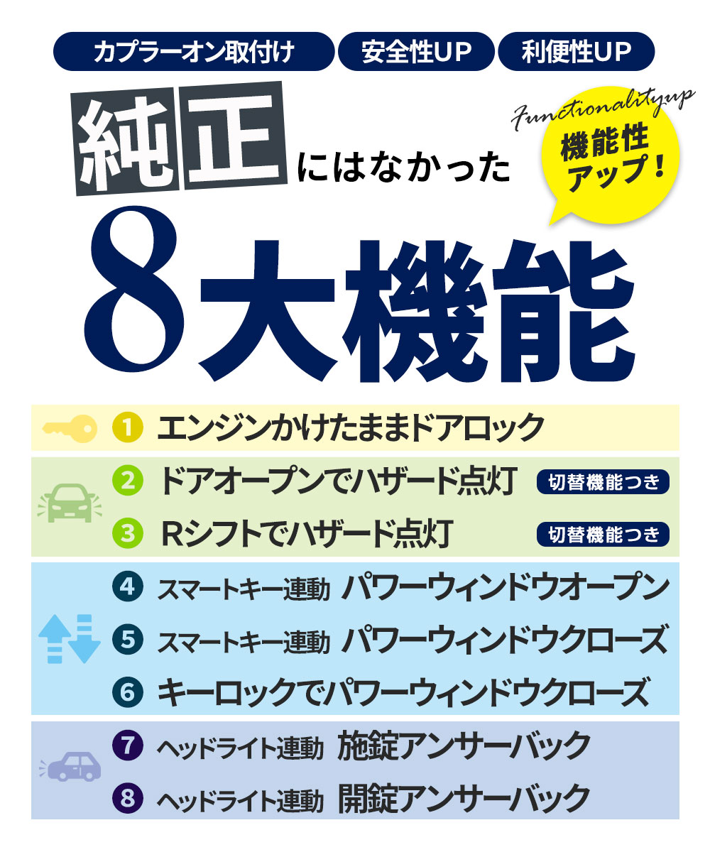[最大P34倍] ハリアー 80系 8大機能 マルチ配線キット エンジンかけたままでドアロック オートハザード スマートキー連動 オートウインドウ ヘッドライト連動 アンサーバック 多機能配線キット セキュリティ